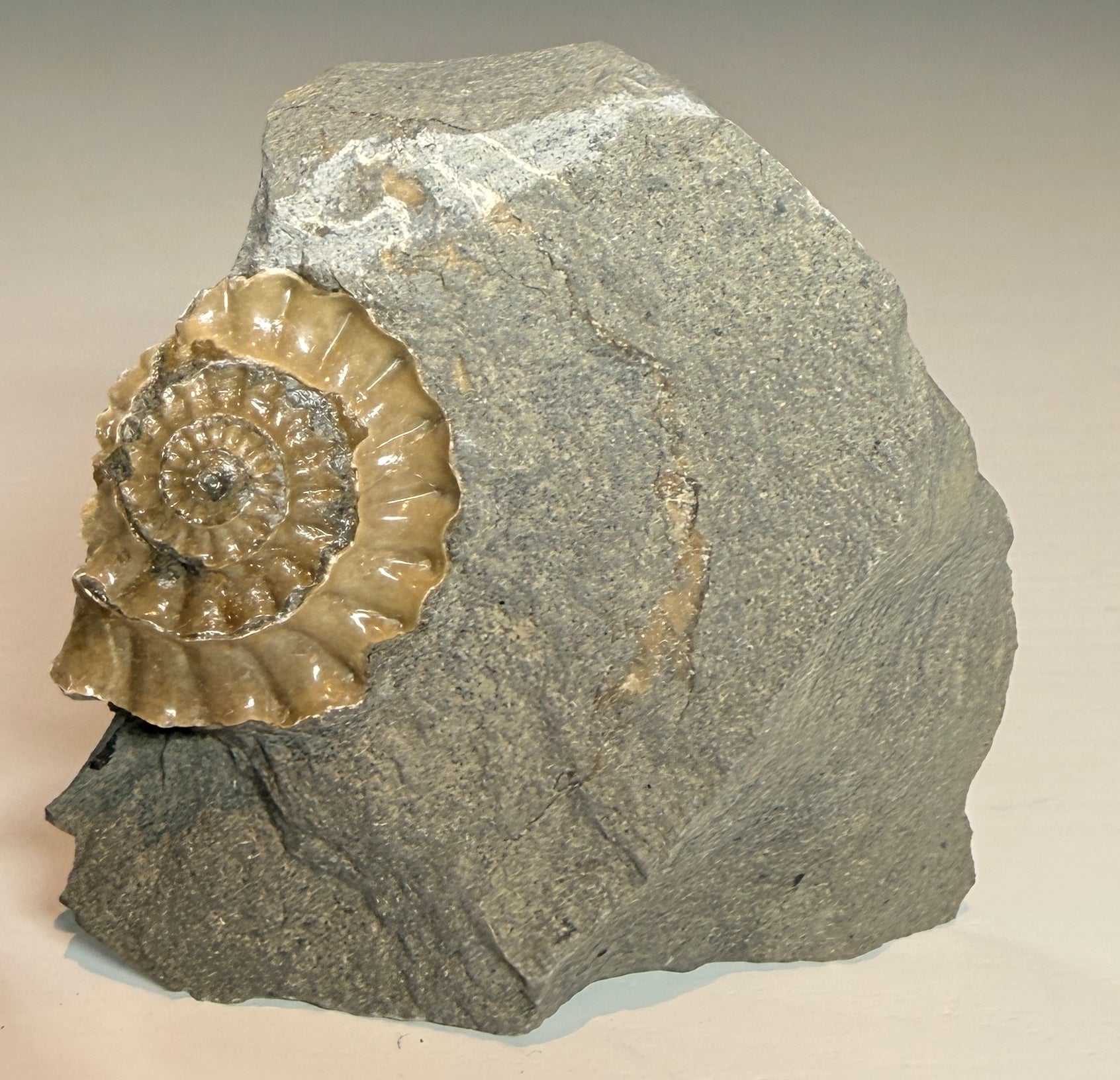 A local piece,  Echioceras raricostatum. Lovely detail in the ammonite and imprint very good.  Actual weight of Echioceras 390g. Postage  included for UK mainland customers.