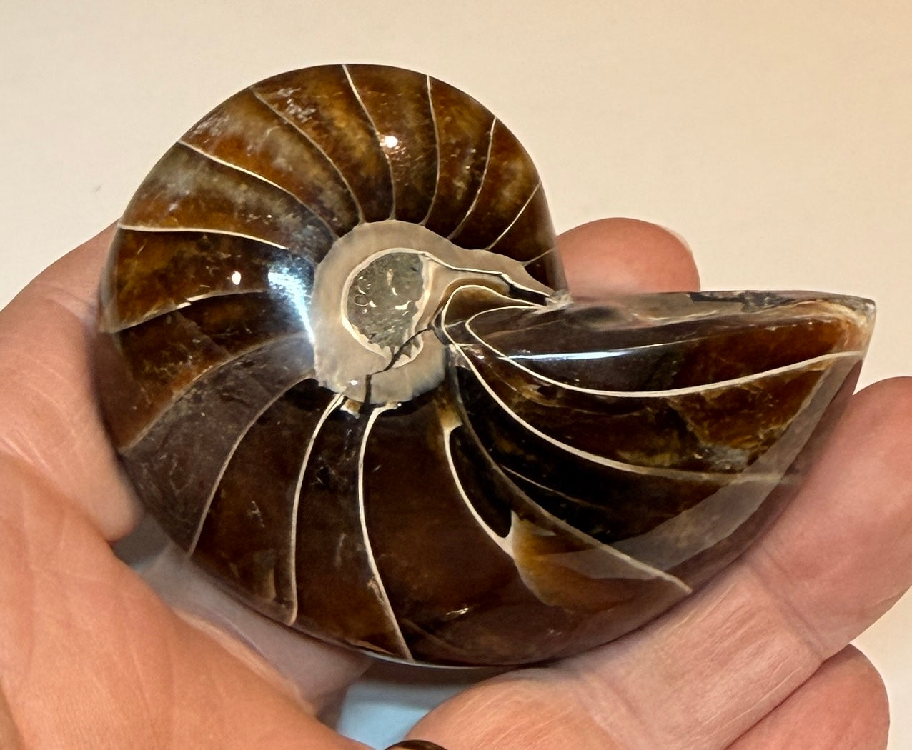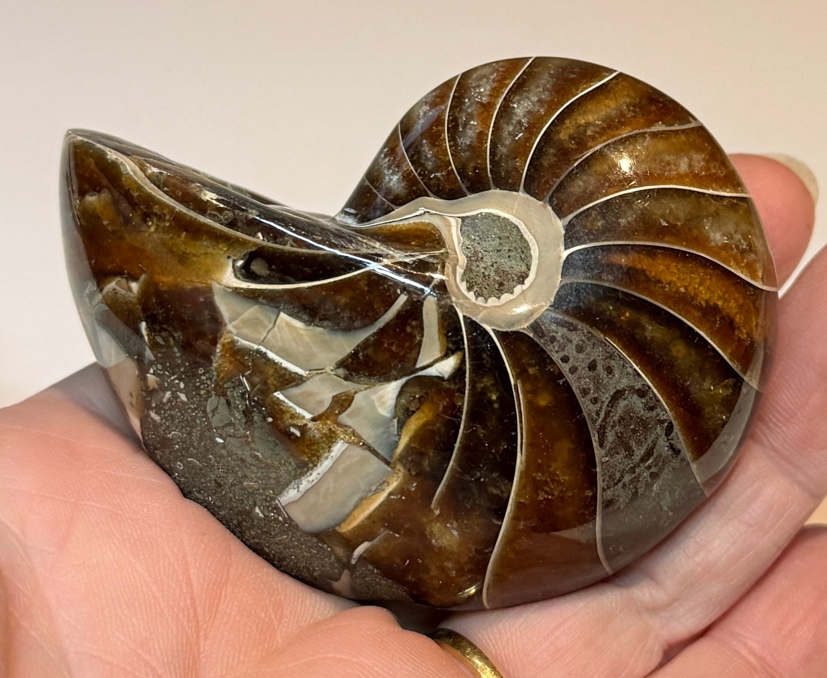 A pretty, polished nautilus. Weight approx: 175g. Postage & stand included for UK customers.