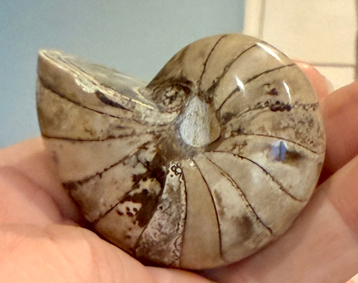 A pretty, polished nautilus. Weight approx: 80g. Postage & stand included for UK customers.