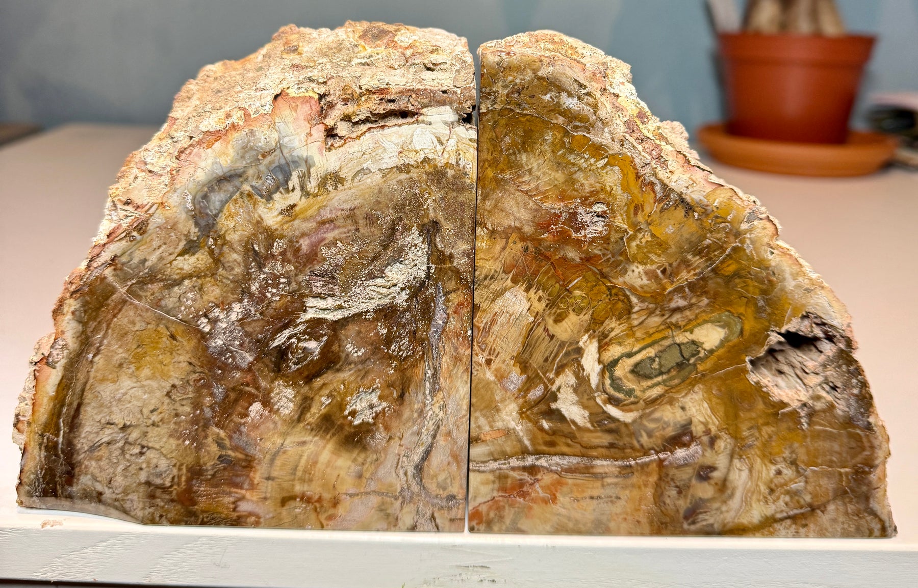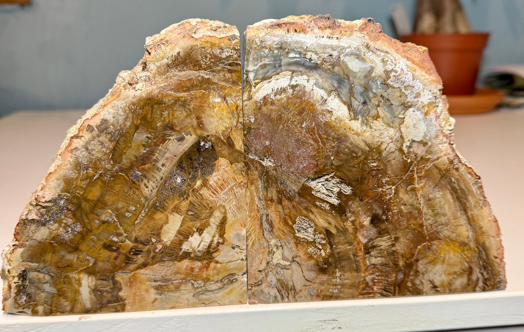 Fantastic pair of fossil wood bookends. Auracaria/Monkey Puzzle. Actual weight 3.4k. Postage included for mainland UK customers.